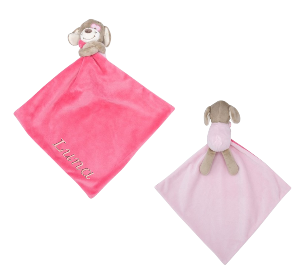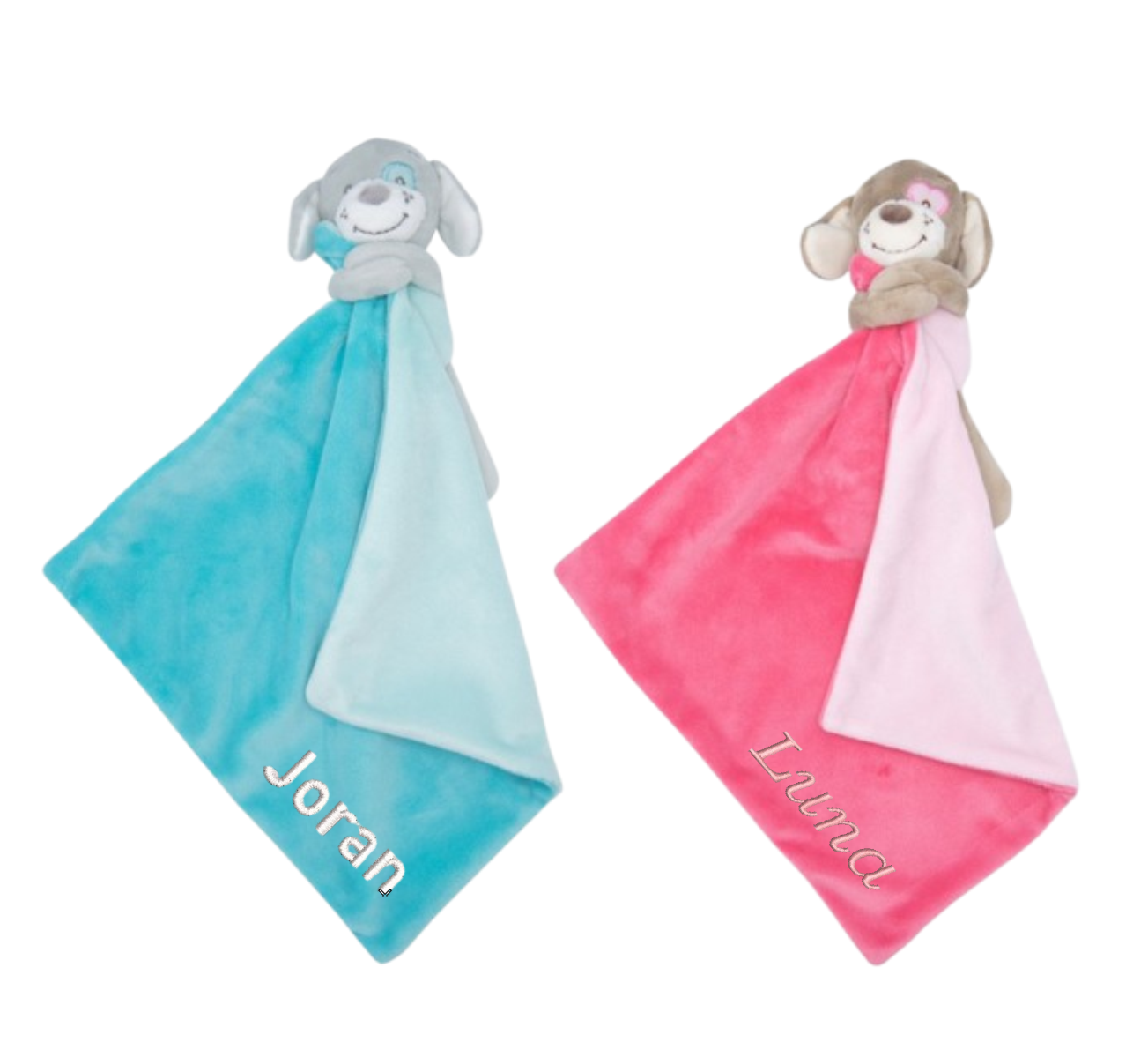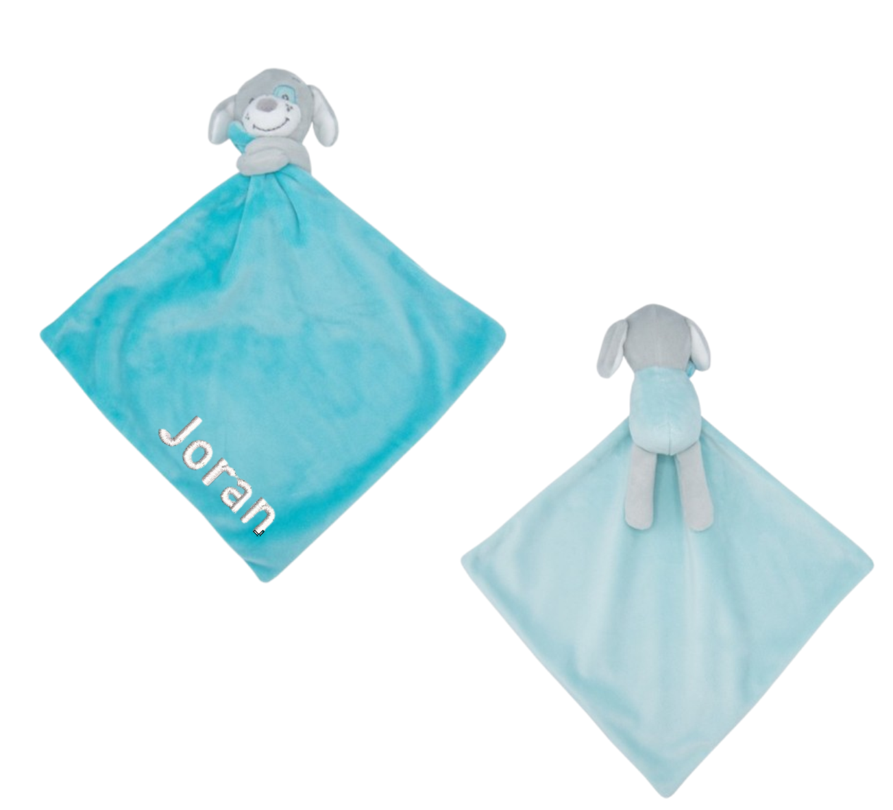 Wij borduren het knuffeldoekje de naam van uw kind in de door u gewenste kleur op de zijkant van het doekje.