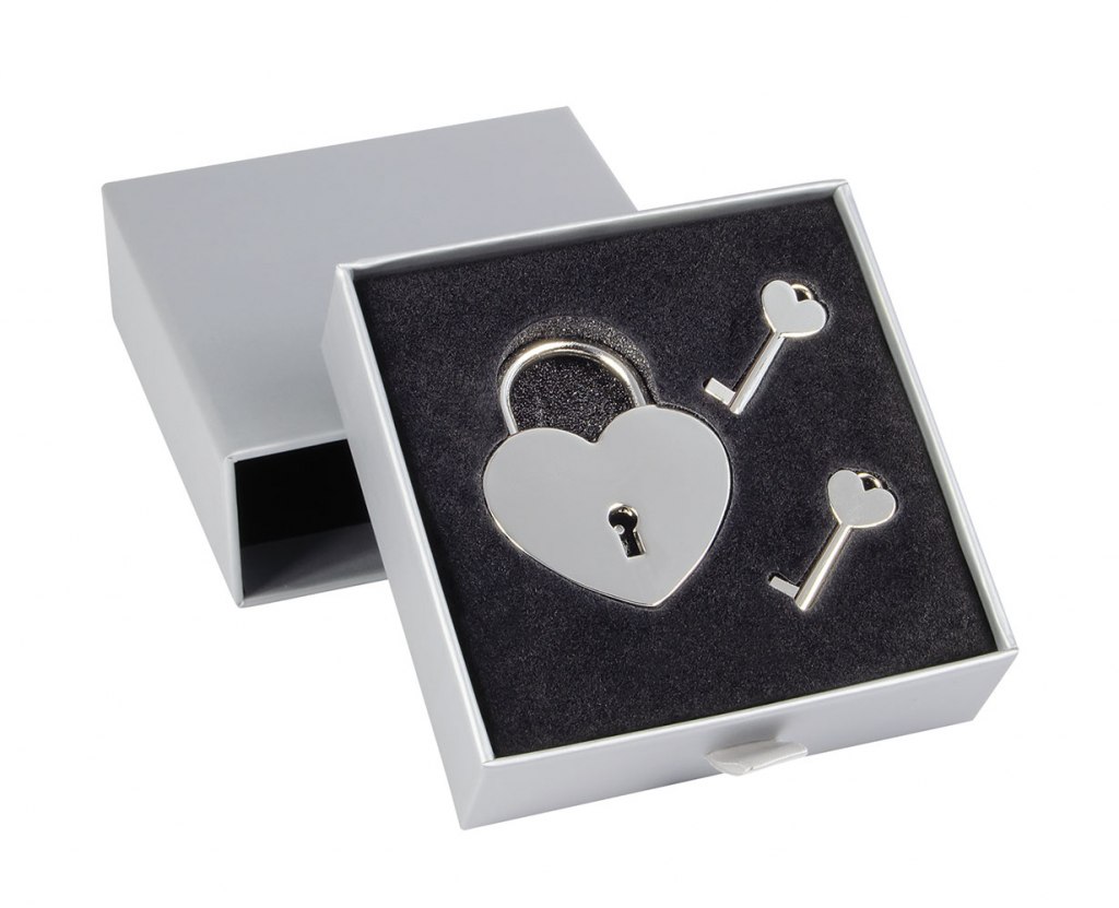 Liefdesslotje in de kleur zilver. Dit liefdesslot is leverbaar in 3 kleuren. Dit liefdesslot kunnen wij voor u graveren met bijvoorbeeld de datum waarop de relatie is begonnen, de trouwdatum, en zo zijn er tal van data te benoemen die je graag wilt herdenken. Nadat het slotje ergens is opgehangen, kun je de sleuteltjes bewaren aan bijvoorbeeld een sleutelhanger (los bij te bestellen). Zo denk je nog vaak aan het bijzondere moment of datum. Leuk om je geliefde mee te verrassen op een van deze dagen, gewoon omdat je van hem/haar houdt. Wordt geleverd in een luxe geschenkdoosje. Afmeting: 5.8 x 4.5 cm. Materiaal: Metaal