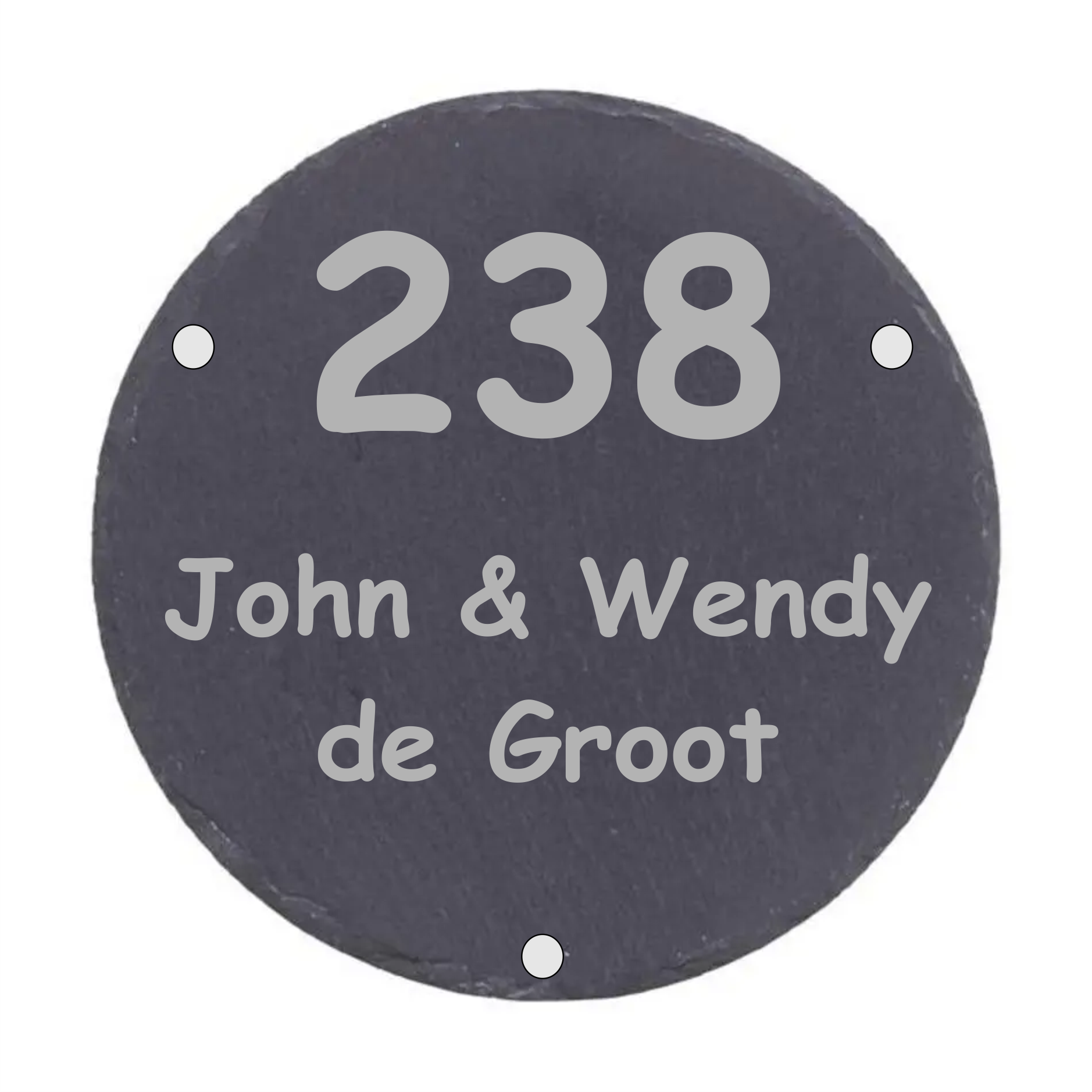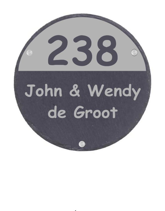 Let op: Het naambord kan iets afwijken van de foto qua structuur en kleur. Dit komt omdat leisteen een natuurproduct is. Elk naambord is dan ook uniek!