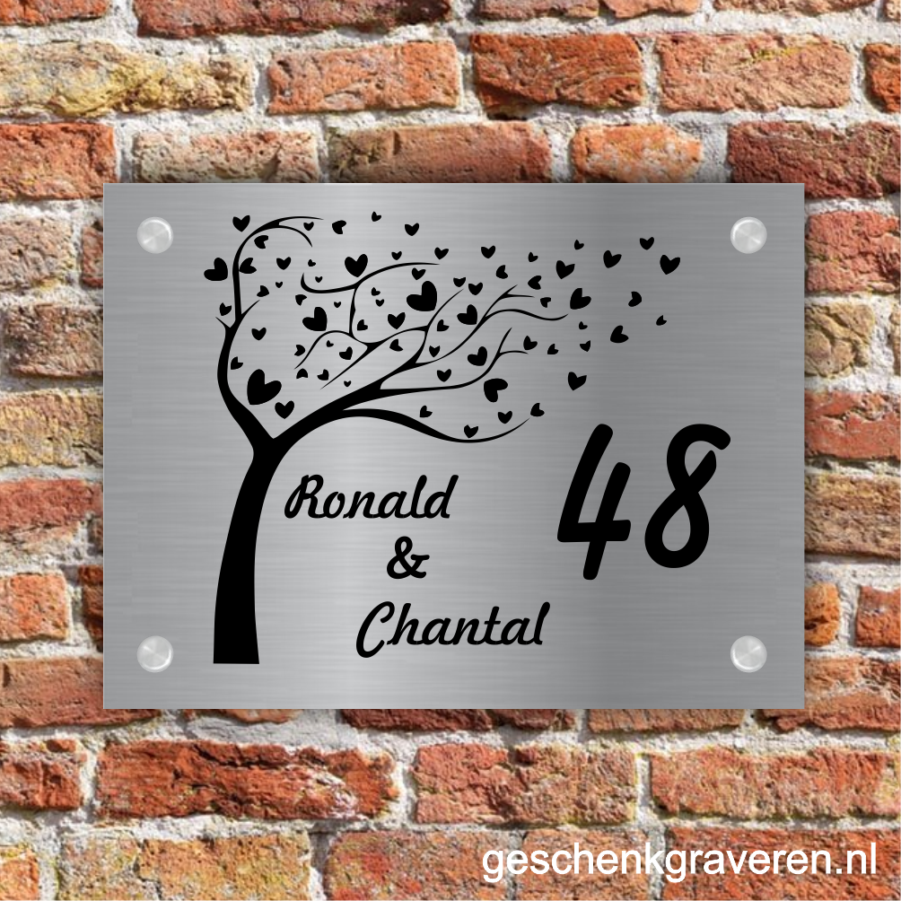 Dibond / RVS-look naambordjes hebben een dikte van 3 mm.