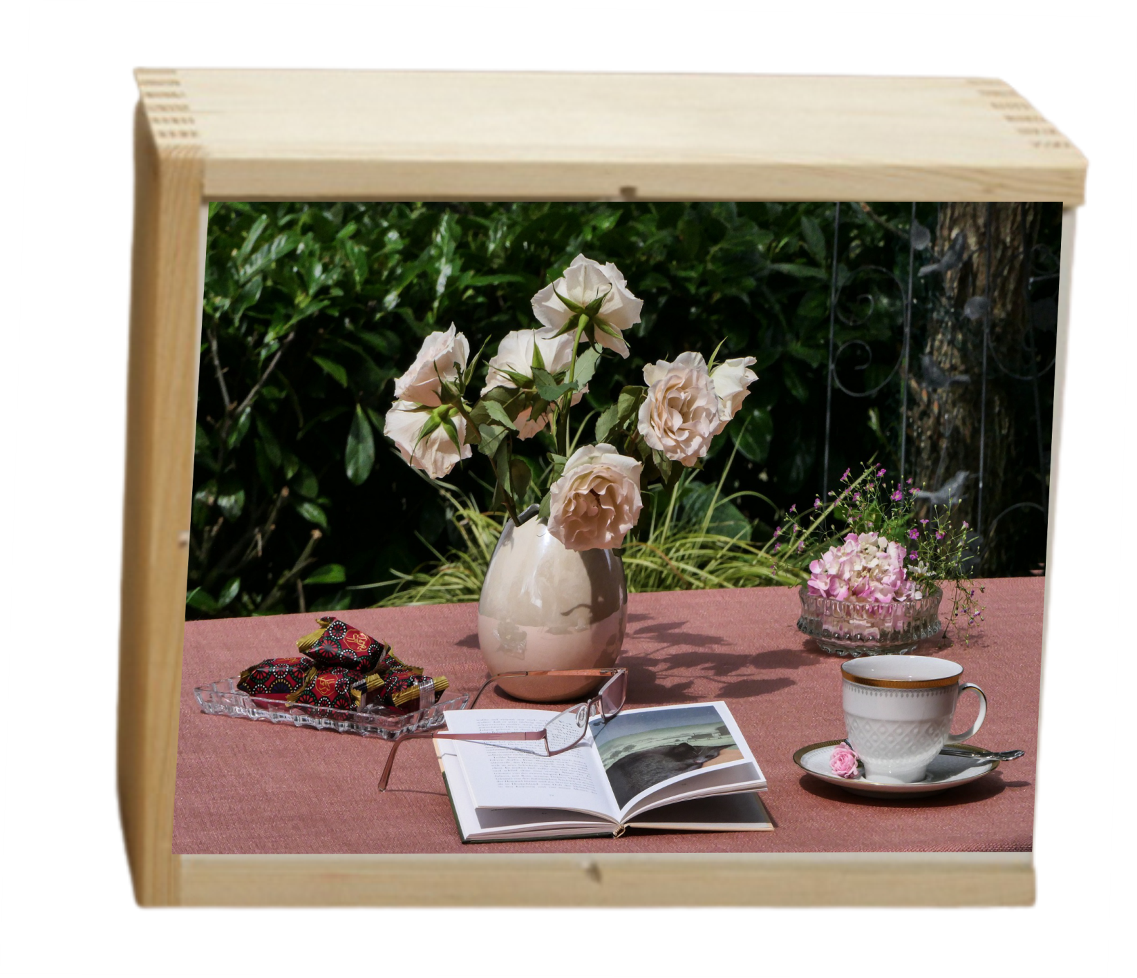 Theedoos met schuifdeksel.